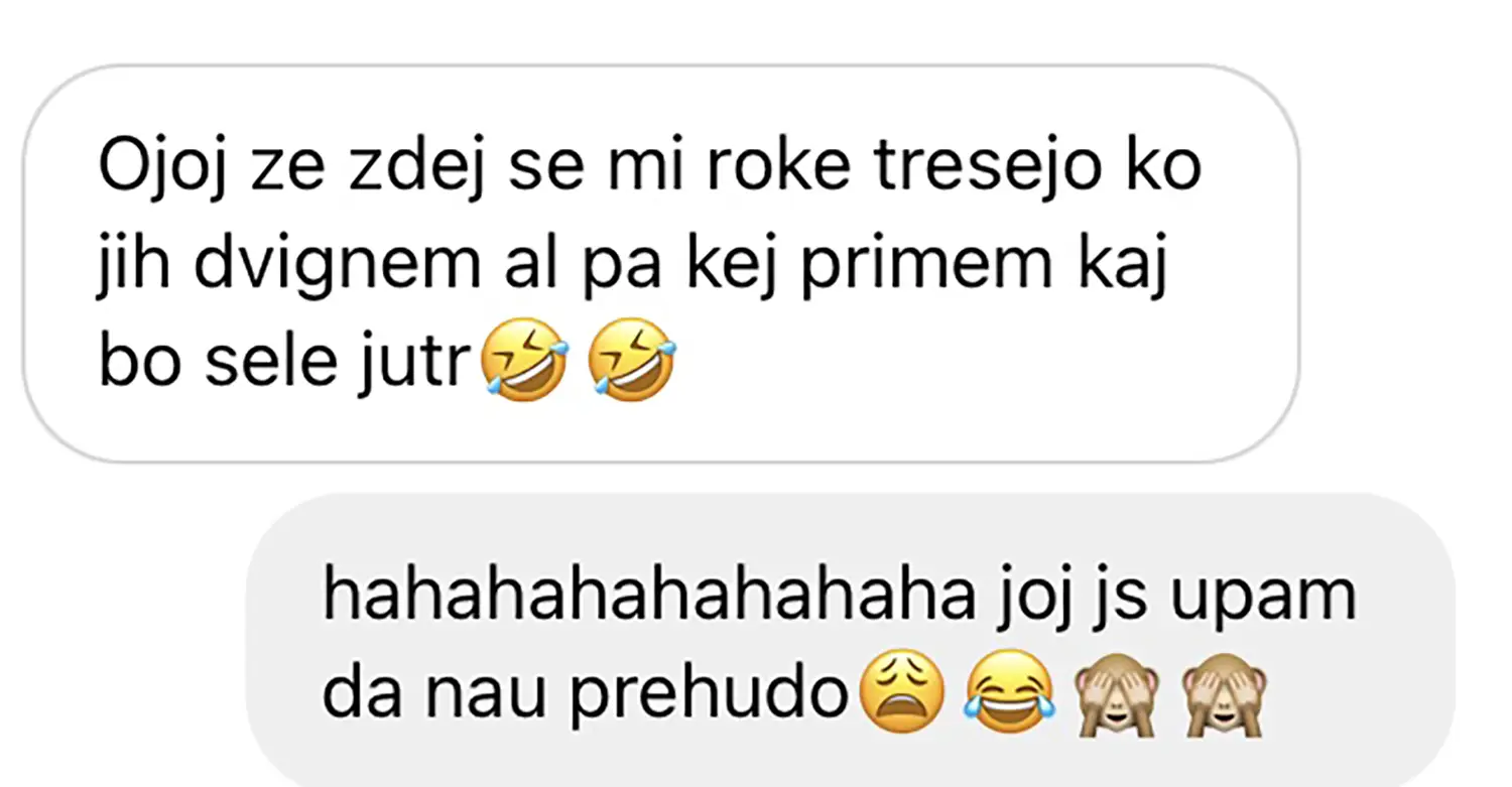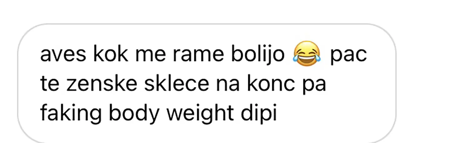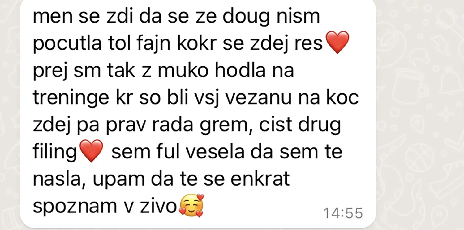 ““Hvala ti za vse napisane treninge in motivacijo. Prvič v življenju imam neko upanje, da bom v roku enega leta imela tako telo, kot sem si ga želela. Počasi že vidim napredek in se iz fitnesa vedno vrnem nasmejana, tudi če je bil trening težek.””
